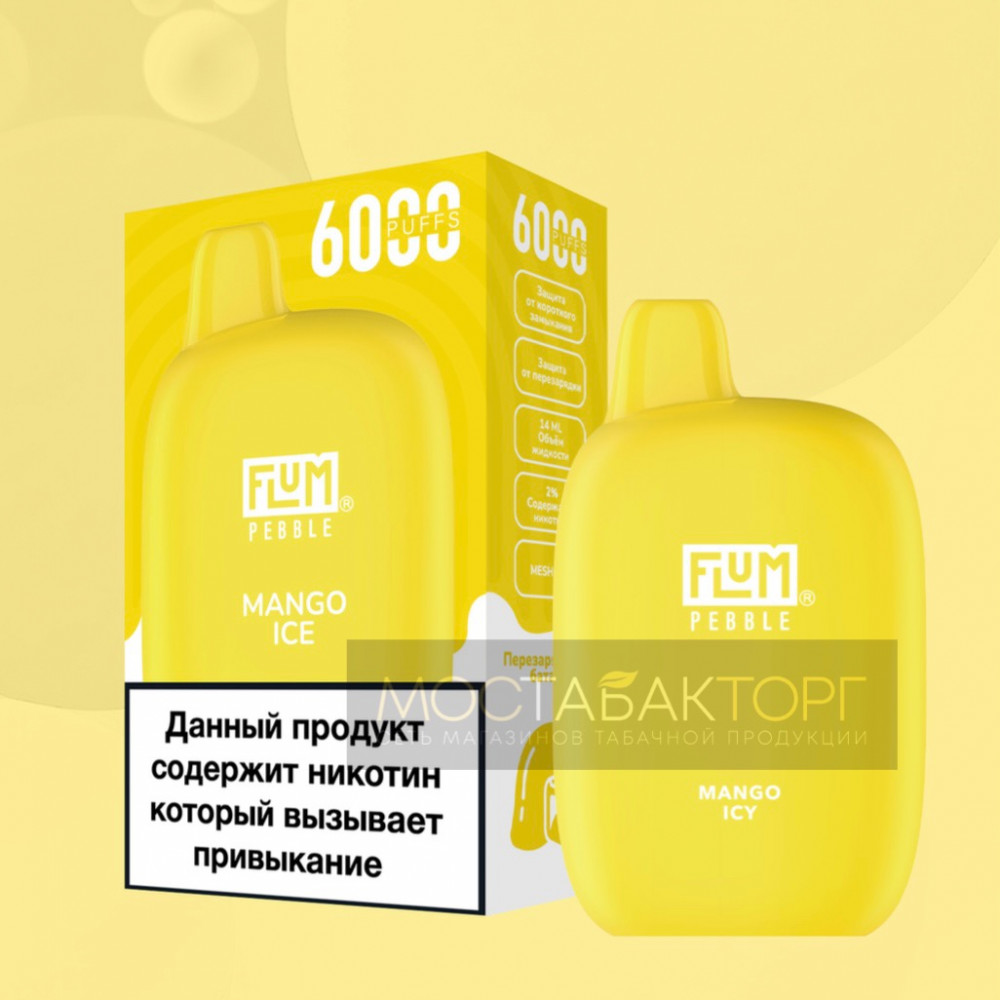 Электронная сигарета FLUM Pebble Манго Лёд на 6000 затяжек