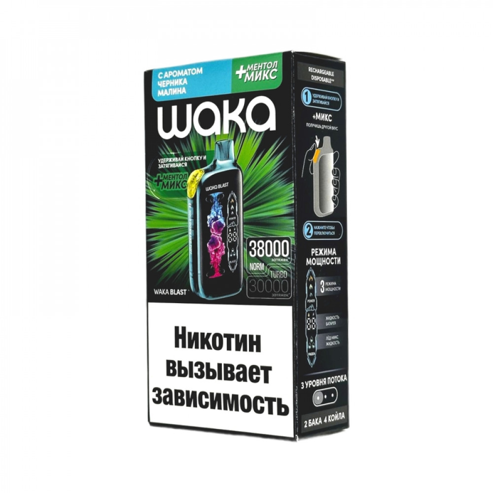 WAKA BLAST 38000 Hard - Черника малина + ментол микс - купить в Тулуне
